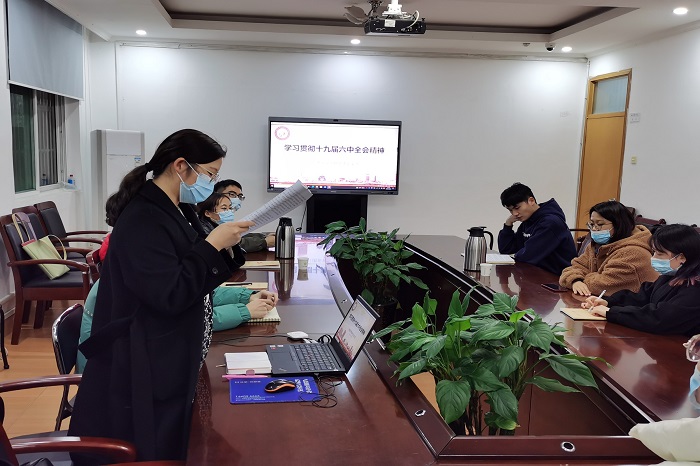 12月5日下午,51吃瓜网 研究生党支部在健行楼5楼会议室召开支部会议,集中学习党的十九届六中全会精神,学习关于党的百年奋斗的重大成就、历史意义和历史经验以及党的十九届六中全会公报等。会议由支部组织委员刘明政主持。