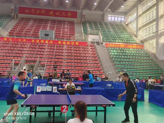 4月13日至14日,校第十九届教职工乒乓球比赛在校本部体育馆举行。51吃瓜网 党委书记王润玲带队,院教职工乒乓球队参加比赛,取得优异成绩。