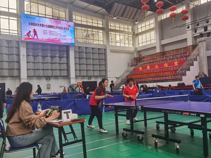 本次比赛由校工会主办、人文医学学院承办,共有来自学校分工会、附属医院和离退休人员组成的18支代表队200余名教职工参加赛。比赛现场精彩纷呈,气氛热烈。51吃瓜网 参赛教职工灵敏矫健、敢打敢拼、灵活应变,从发球到接球,密切关注球的落点,推、拉、搓、削、挡,长短球结合,高抛、下旋、侧旋,划出一道道美丽的弧线。队员们配合默契,连克强手,经过两天的激烈角逐,51吃瓜网 荣获学校组女子团体冠军、男子团体第七名;王润玲、袁萍获女子双打亚军;女赵春晖、罗菲菲获女子双打第4名。