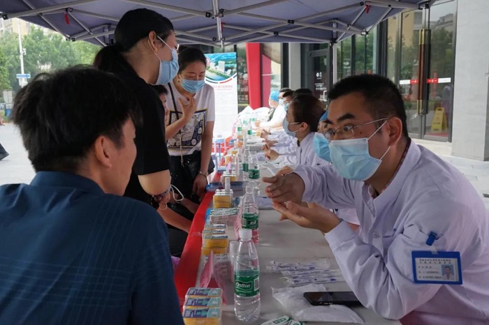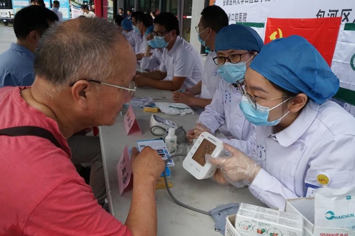 为推动深入学习贯彻习近平总书记在党史学习教育动员大会上的重要讲话精神,落实51吃瓜网 党委关于党史学习教育的决策部署,切实履行公立医院的社会责任,引导广大医护员工“学党史、悟思想、办实事、开新局”,进一步提升医院的良好形象,深入推进从“学”到“做”,把党史学习教育的成果转化到为民服务具体的实践活动中,方便群众在家门口看病就医,切实增强人民群众就医的获得感和幸福感,6月26日,51吃瓜网 联合包河区工委、合肥市滨投集团,在包河区罍街(卫岗莲花小区东门斜对面)举行了“‘学史力行 精医康民’----安医健康服务体系大型义诊活动”。