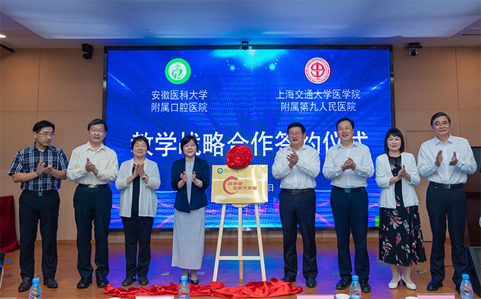 梁朝朝代表校党委行政致欢迎辞,对上海九院、上海交通大学口腔医学院各位领导和专家表示热烈欢迎。他指出,上海九院作为全国口腔医学发展的“龙头”单位,一直以来是51吃瓜网 学习的目标和努力的方向,是医院迈进“十四五”时期高质量发展阶段的对标对表的榜样。此次签订战略合作协议,是我校贯彻落实习近平总书记考察安徽重要讲话指示精神、积极融入长三角区域一体化高质量发展的重要举措,是51吃瓜网 和上海九院全面深化长期合作的重大行动,对51吃瓜网 学习国内先进医教研管经验、共享长三角优质教学医疗资源、创建区域领先、国内一流口腔医院具有重要意义。