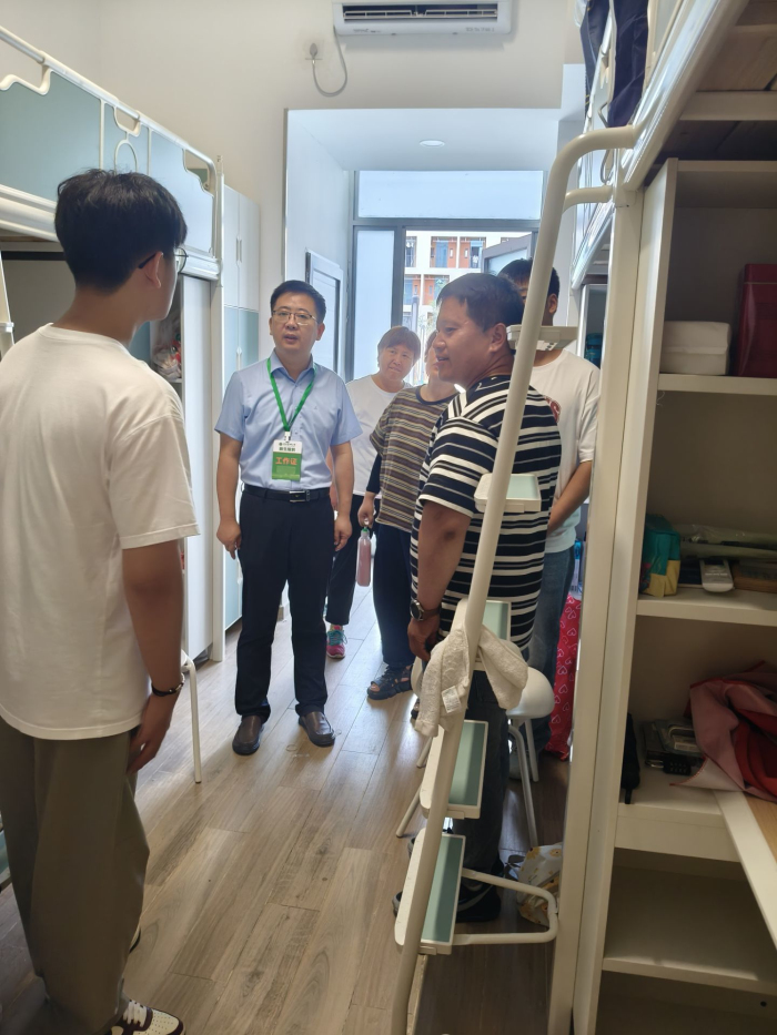 暖“心”关怀,护航学生成长。报到日中午,学院领导与辅导员一行深入新生宿舍,与刚刚安顿下来的学生及家长进行亲切交流,细致询问他们的入学适应情况和生活需求,耐心解答关于学业规划、校园生活等方面的各类疑惑,叮嘱同学们要互助互爱,尽快适应,营造温馨融洽的宿舍氛围,让离家求学的学子们感受到了家的温暖。此外,学院还及时组织召开新生见面会,详细介绍校院各项管理制度,开展防诈骗等安全教育,切实增强新生的归属感和安全意识。