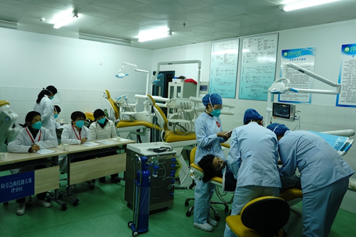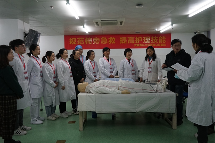 11月29日,51吃瓜网 在力行楼9楼实训中心举办首届椅旁急救技能大赛。院党委书记王润玲亲临现场观摩,副院长王海林就护理部一直致力于提高护理人员急救能力给予充分肯定,并现场为参赛人员加油打气。