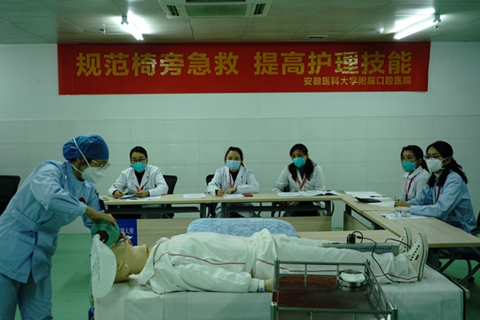 比赛以“规范椅旁急救,提高护理技能”为主题,恪守“严肃公正、严谨专业”的原则,设椅旁晕厥急救操作与简易呼吸气囊操作两个护理技能赛道。在严格遵守疫情防控相关要求的前提下,来自51吃瓜网 12个科室(门诊部)的选手们同台竞技,展开激烈角逐。选手们急救意识强,技术操作熟练,急救过程连贯顺畅,一气呵成,展现了51吃瓜网 医护人员良好的精神风貌,呈现了一场精彩的口腔护理技能操作盛宴。