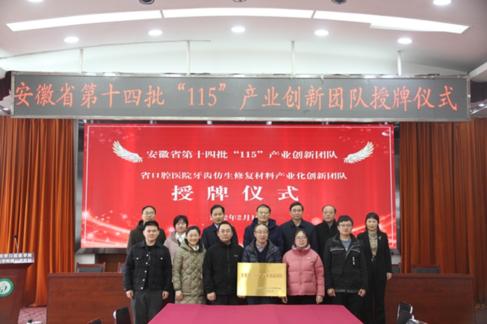 省委组织部人才工作处处长、一级调研员黄多能向获评“115”产业创新团队表示了热烈祝贺。他指出,牙齿仿生修复材料产业化创新团队此次入选“115”产业创新团队,是学院(医院)近年来在人才团队建设工作上取得的重要成果,也是学院(医院)引育并举、重视人才团队培育成果的有力体现。