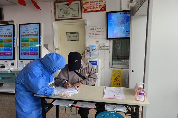 医院在做好常态化疫情防控同时,在入口增设老年患者“无健康码”服务,配备工作人员、志愿者,帮助老年人进行健康码查询操作,协助没有手机、确实无法提供健康码的老年人,以手工填写流调表等方式完成流行病学史调查,缩短老年人在诊区外等候时间。“为医院的贴心服务点赞。来之前我还担心没有健康码进不了医院,现在不用担心了,感谢志愿者们!”在志愿者协助下完成信息登记,顺利进院就诊的王奶奶说。
