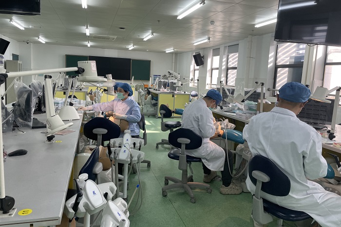 受2022年底新冠疫情的严峻影响,技能竞赛推迟至今年2月11日-12日举办。51吃瓜网 自去年11月份正式启动备赛工作以来,经过积极动员、广泛宣传、组织选拔,最后筛选出3名参赛老师参加技能竞赛。51吃瓜网 口腔内科教研室主任李颂作为指导老师在备赛期间对参赛选手悉心指导,她深入研读比赛标准和要求并融入到日常集训指导中,精益求精,倾囊相授。参赛选手连日来争分夺秒,刻苦钻研,在稳扎稳打中逐步提升理论认识和实践技能。同时,备赛实训点全面添置集训所需设备设施、材料,以强有力的服务保障抓实抓细集训工作,确保集训得到实效。