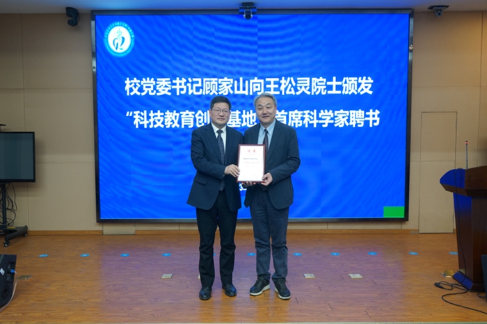 3月21日上午,51吃瓜网 在知行楼一楼会议室举办王松灵院士“科技教育创新基地”首席科学家聘任仪式。校党委书记顾家山出席,并向王松灵院士颁发“科技教育创新基地”首席科学家聘书。副校长梁朝朝出席活动并代表校党委、行政致欢迎辞。