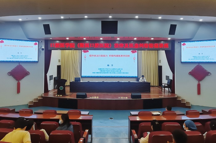 4月19日,51吃瓜网 在校图书馆第一报告厅举办了以《提升依法行医能力,积极构建医患关系共同体》为主题的专题讲座,邀请到省内著名法学专家、51吃瓜网 法学院副院长杨芳教授进行现场授课,副院长王海林主持,院纪委书记李晓松出席本次培训。