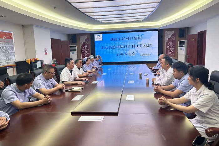 6月20日下午,定远县总医院在该院行政楼二楼会议室举行对口帮扶工作总结表彰专题会议,51吃瓜网 种植科刘鑫副教授应邀出席会议,并被授予“对口帮扶特别贡献者”荣誉称号。该院副院长潘书贵主持会议,医务股长章余留、口腔科主任杨勇及口腔科专家团队参加。