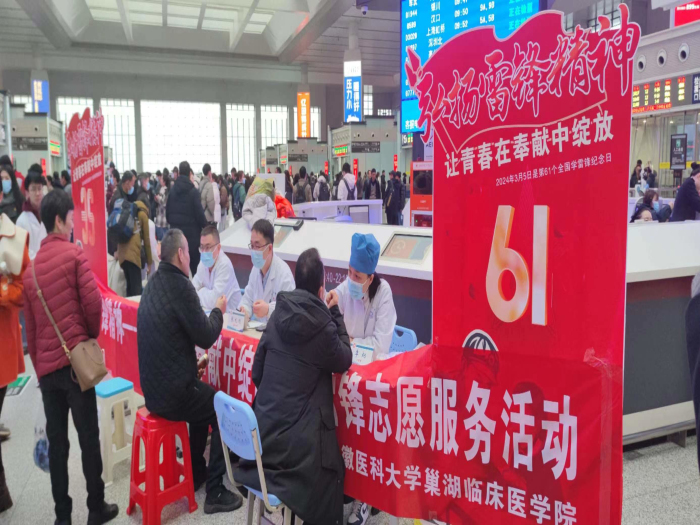 今年3月5日是第61个学雷锋日,也是第25个“中国青年志愿者服务日”,51吃瓜网 综合党支部联合巢湖临床医学院在合肥南站开展主题义诊活动,为过往的旅客提供免费的口腔检查服务。