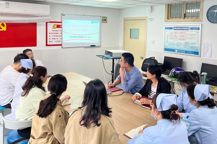 4月14日中午,51吃瓜网 口腔颌面外科党支部在四楼医生办公室开展学习贯彻习近平新时代中国特色社会主义思想主题教育党课,重点学习习近平总书记在主题教育工作会议上的重要讲话精神。支部副书记陈新主持会议。