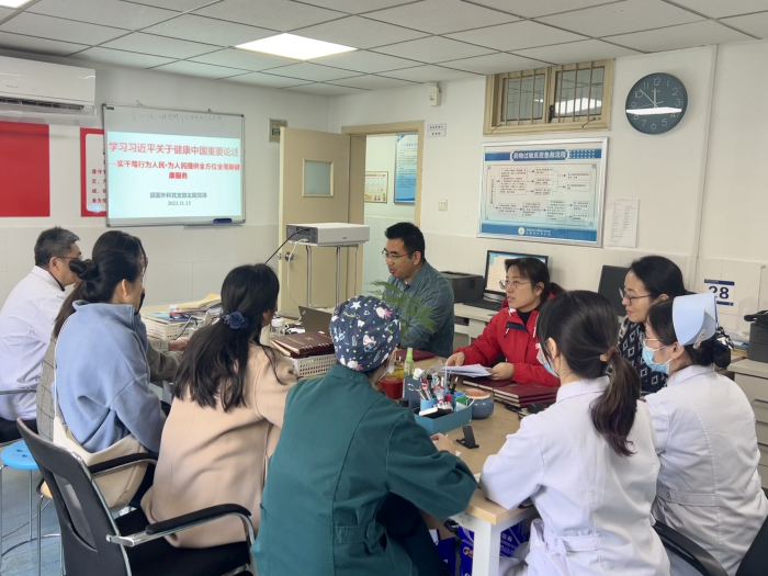 11月13日中午,口腔颌面外科党支部在四楼医生办公室召开主题党课学习会议,集体学习习近平关于健康中国重要论述。支部书记陈新主持会议。