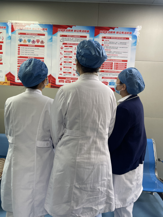 让宪法入心。在科室工作群中发布《宪法一生》微电影让大家一起学习,电影以“我”为第一视角,我与宪法一同出生,在“我”的成长过程中,宪法融入到生活的点点滴滴,无处不在。宪法是我国的根本大法,它就像黑夜里的一束光,驱逐黑暗,照亮身边的每一处角落。