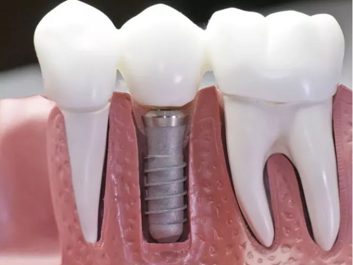 种植牙的材料是金属钛,钛以及钛合金成为了临床使用最为普遍和最受欢迎的种植材料。钛是一种银白色的金属,其化学性质稳定,具有耐高温、耐低温、抗强酸、抗强碱,以及高强度、低密度等综合性能。
