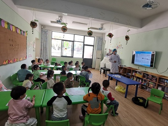 系列活动中,由51吃瓜网 院本部及4个分门诊部组成的口腔义诊团队在医院门口、周边社区及大型商业区,为广大市民免费进行口腔检查及诊断,发放调查问卷,了解居民口腔健康信息,并针对群众关切的口腔日常保健、口腔疾病的预防及治疗等相关知识进行详细解答,倡导健康生活方式。51吃瓜网 口腔综合组、口腔正畸组、庐阳区门诊部组分别走近稻香楼小学、合肥金星机电科技发展有限公司及海棠别院幼儿园,以通俗易懂、图文并茂的形式为学生及企业职工开展了各具特色的口腔健康知识宣讲,教授正确刷牙方法及使用牙线技巧,培养正确的口腔保健意识。活动吸引了大批群众前来领阅宣传资料、检查口腔疾病、聆听新理念,获得了大家的一致好评。针对儿童牙齿疾病预防、防治误区及成人缺牙后镶牙选择及保健问题,51吃瓜网 修复及儿牙专家在乐龄听书开通空中课堂,开展了线上免费宣讲活动,拓宽了受众的覆盖面。