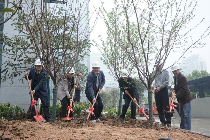 实地查看新院区建设情况后,余永强代表校党委、行政,向建设工作人员及一线工程建设者致以亲切的慰问,对他们的辛苦付出表示感谢,对项目进展给予了高度肯定。绵绵春雨中,他和51吃瓜网 新院区建设指挥部成员一起,共同种下了桂树、桃树、琵琶等树苗,并希望51吃瓜网 新院区像树苗一样茁壮成长,全院职工要从工作中汲取营养,向下扎根、向上生长,向阳而生,撑起一片绿荫,守正创新,勇毅前行,共同为新院区高质量发展描绘美丽画卷。