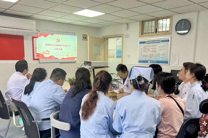 5月29日中午,51吃瓜网 副院长徐文华在病房四楼医生办公室以“凝聚起大兴调查研究的强大共识和力量”为题,为颌面外科支部全体成员讲授主题教育系列专题党课。