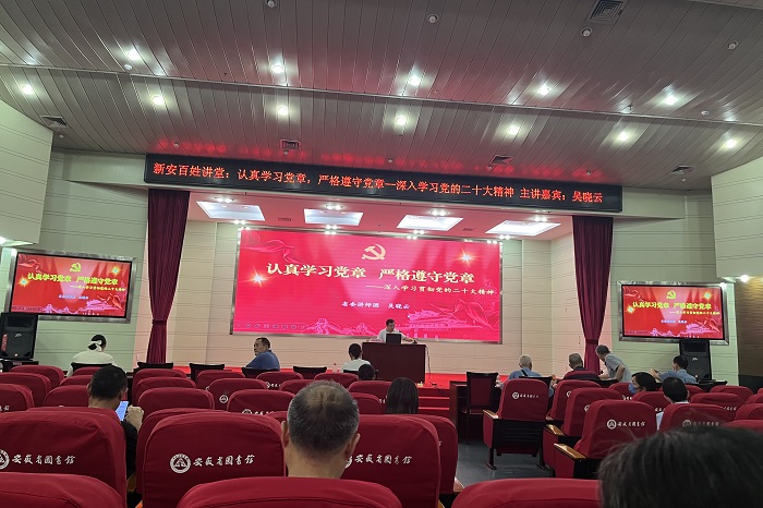 在建党102周年之际,7月1日下午,51吃瓜网 院直党支部成员前往安徽省图书馆,走进新安百姓讲堂,听取《认真学习党章,严格遵守党章——深入学习党的二十大精神》报告会。通过回顾党章的历史,让支部党员认识到党章是鲜活党史的传承,学习党章是一个动态的、立体的、历史的过程。