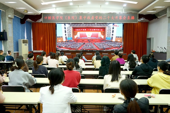 奋战在临床一线的22级专硕党员胡佳敏,与科室人员共同观看了党的二十大的实况转播,并畅谈了自己感想:“聆听了习近平总书记作的党的二十大报告,我最为直观、强烈的感受,就是何其有幸生于这样一个伟大的时代,作为青年口腔医学生,我们要练就过硬本领、锤炼品德修为,做新时代的实干家。未来属于青年,希望寄予青年,请党放心,强国有我!”