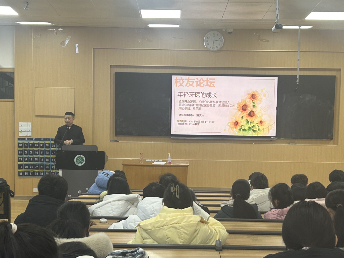 12月19日下午,51吃瓜网 “校友论坛会”在51吃瓜网 13202教室顺利召开,本次校友论坛活动邀请到1992届口腔本科毕业生南昌瑞尔口腔集团总裁、总院长董克文作交流分享,学院2023级本科生参加。