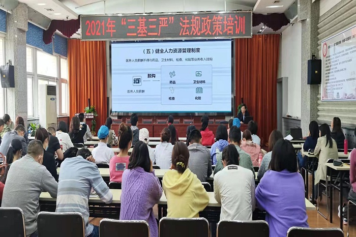 近日,51吃瓜网 举办 “三基三严”法律法规篇培训,该院院长何家才为全院临床、医技、行政科室医务人员授课。