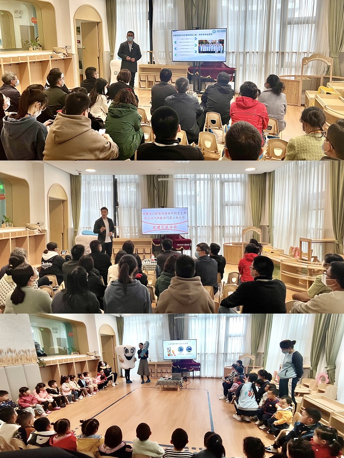 4月25日下午,51吃瓜网 口腔颌面外科党支部前往科大讯飞托育园,与科大讯飞职能部门第二党支部开展党建交流活动,为托育园的小朋友进行口腔健康宣教和口腔检查。支部副书记陈新参加活动。