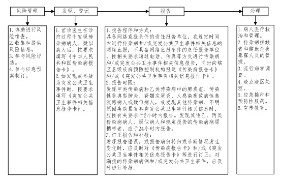 (一)乡镇卫生院、村卫生室和社区卫生服务中心(站)应按照《中华人民共和国传染病防治法》、《突发公共卫生事件应急条例》、《国家突发公共卫生事件应急预案》等法律法规要求,建立健全传染病和突发公共卫生事件报告管理制度,协助开展传染病和突发公共卫生事件的报告和处置。