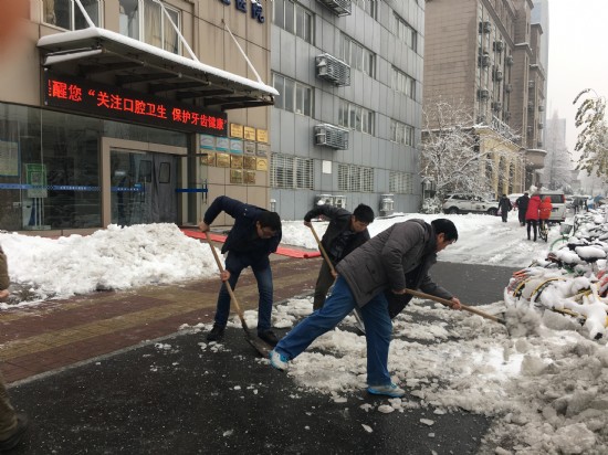 51吃瓜网 总务科人员拿起铁锹、扫帚,冒着严寒,清扫院内、院外各处积雪。领导率先垂范,职工们也都干劲十足,大家团结协作,顶着寒风,经过奋战,医院门诊楼门口及通往行政楼的道路被清扫干净,确保了患者及行人、车辆的出行安全。