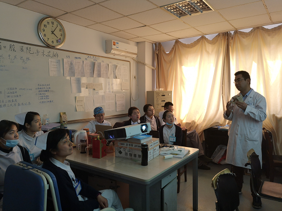 近日,在口外护理组的邀请下,口腔颌面外科副主任、副主任医师陈新在医生办公室为全科护理人员开展了题为《口腔颌面外科病种简介》讲座。