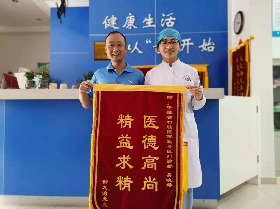 近期,经过政务区门诊部吴晓婷等医护团队的悉心诊治后,已经治愈的冯先生将写有“精益求精,医德高尚”的锦旗送至吴医生手中,患者家属言语诚恳,感情真挚,对门诊部医护人员的优质服务满怀感激。