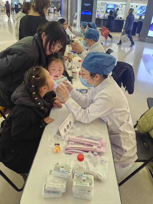 12月14日,为迎接高新总院开诊一周年,51吃瓜网 联合合肥市妇幼保健院组织专业力量,走进高新银泰商圈开展大型公益义诊活动,将优质口腔医疗服务送到市民“家门口”。