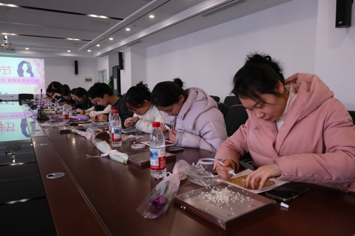 3月8日下午,在第116个“三八”国际劳动妇女节来临之际,院工会在11楼会议室举办非遗宋锦珍珠画手作体验活动,副院长曹颖出席活动,并向全体女教职工致以节日的诚挚问候与美好祝福。