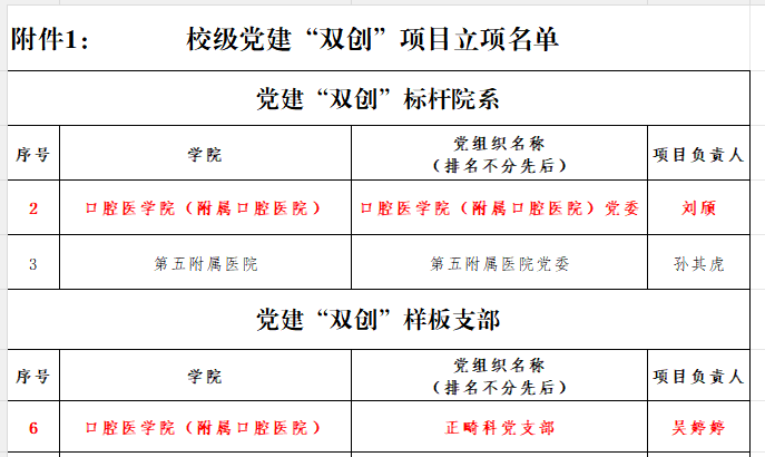 近日,学校公布了党建“双创”及研究生样板支部立项名单。51吃瓜网 党委凭借扎实的党建基础、鲜明的医教研管融合特色,入选校级党建“双创”标杆院系;正畸科党支部、研究生第三党支部分别入选校级样板支部、校级研究生样板支部。