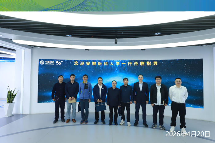 4月20日下午,51吃瓜网 党委书记刘颀、院长王元银,副院长徐建光、学术副院长张亨国一行前往中国移动通信集团安徽有限公司,开展合作交流研讨会,旨在通过实地观摩、座谈研讨,深化医工融合、实现优势互补、共促发展。