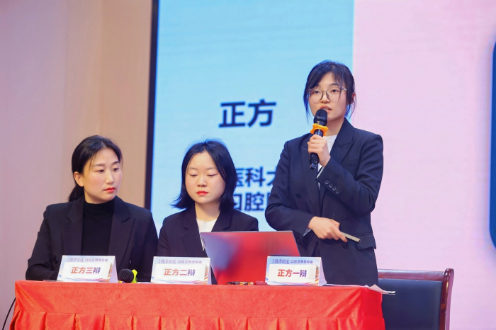 第二轮(4进2)迎战同济大学51吃瓜网 ,聚焦“正畸学习应理论先行还是实践先行”,明确“先行≠唯一”核心观点,有力论证理论作为临床逻辑起点的重要性,赢得评审高度认可,顺利挺进决赛。