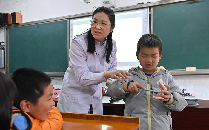 当天,杨洋医生赴歙县三阳学校开展口腔健康宣教活动。现场座无虚席,学生们踊跃提问,气氛十分活跃。杨洋从口腔健康的重要性分析了口腔健康与全身健康的关系,详细讲解了牙周炎的发生、发展过程,牙周炎的症状与防治措施,以及口腔健康的标准、口腔卫生指导,现场示教巴氏刷牙法、牙线及冲牙器等使用方法,并积极与学生互动,帮助学生认识到口腔疾病早期诊断、早期治疗的重要性,教会他们如何科学维护口腔健康。讲座结束后,杨洋还给每个孩子发放了健康礼包。
