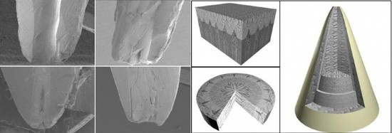 由于龋病、外伤等原因所导致的不可逆性牙髓炎或根尖炎症,目前的医疗手段,一般都是消除炎症和去除病变组织后,采用人工材料进行充填治疗。由于人工材料与牙体组织性质的不同以及微缝隙的存在,服役过程中常伴有材料与牙体组织结合界面处微渗漏的产生,继而导致根管治疗的失败。研发类似牙体组织结构的生物材料,使其与根管牙本质紧密结合,杜绝微渗漏的产生,是目前口腔医学研究的前沿和一项挑战性工作。由51吃瓜网 李全利教授带领的研究团队,引进根管系统一体化封闭的概念,依据生物矿化的分子机理,采用仿生矿化的技术,进行了根管系统矿化封闭的研究并取得初步成果,实现了根管系统在短期内的迅速矿化封闭,矿化晶体与根管牙本质结合紧密,无微缝隙产生。该研究为未来的临床应用提供了极大可能性,为临床上根管治疗带来了新的方向。