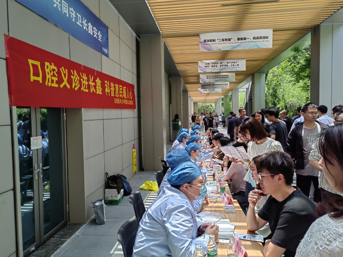 5月14日,来自修复科、正畸科、口腔颌面外科等科室的8位义诊医师走进长鑫存储技术有限公司开展口腔义诊活动,活动现场,义诊专家详细检查职工口内情况,对其口腔状况作系统评估,深入浅出地阐述了口腔保健的重要性。针对职工存在的牙齿敏感、缺牙补牙、牙周疾病等常见口腔问题,义诊专家通过丰富的临床经验和扎实的理论知识提出合理的诊疗建议。与此同时,工作人员向咨询群众发放口腔宣传图册及牙线等口腔保健用品。通过此次义诊活动,让职工在企业内就享受到专业的口腔医疗服务,全面了解自己口腔状况,增强自我口腔保健的意识,受到长鑫职工们的一致认可和广泛好评。