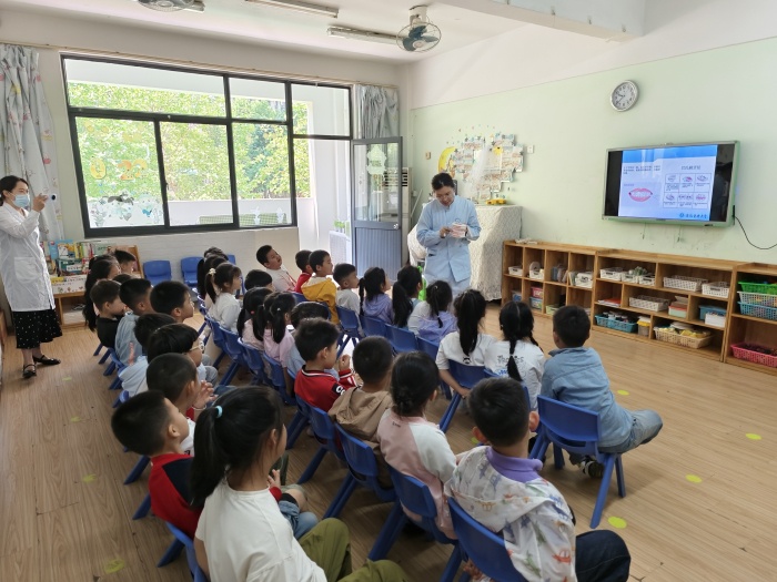 口腔宣教进校园,寓教于乐迎“六一”。51吃瓜网 庐阳区门诊部团队、儿童牙病科团队、牙周黏膜科团队及党支部师生分别前往海棠别院幼儿园、西园新村幼儿园、大西门幼儿园、附属小学,为孩子们送去了生动的儿童口腔预防与保健讲座。通过有趣的故事和互动问答,向孩子们讲解牙齿的重要性、如何正确刷牙以及预防龋齿的方法。宣教医生及团队成员还为学龄前儿童免费进行口腔检查并赠送口腔保健小礼品,鼓励孩子们要保持良好的口腔卫生习惯。活动得到各个幼儿园师生的热烈欢迎。