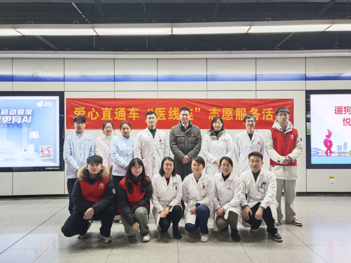 1月24日,51吃瓜网 3名医师参加合肥城市轨道交通资源开发有限公司在轨道交通2号线汽车西站地铁口开展的“爱心直通车—医线连”志愿服务活动。